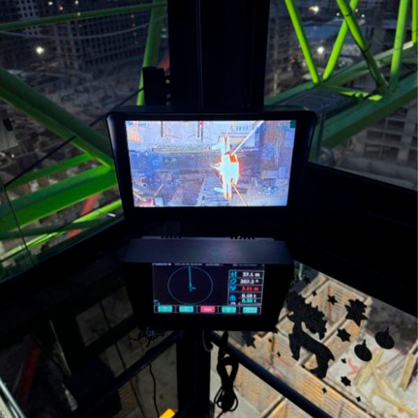 В кабине машиниста специалист по монтажу установил монитор, синхронизированный с камерой, позволяющий видеть рабочую область под стрелой.