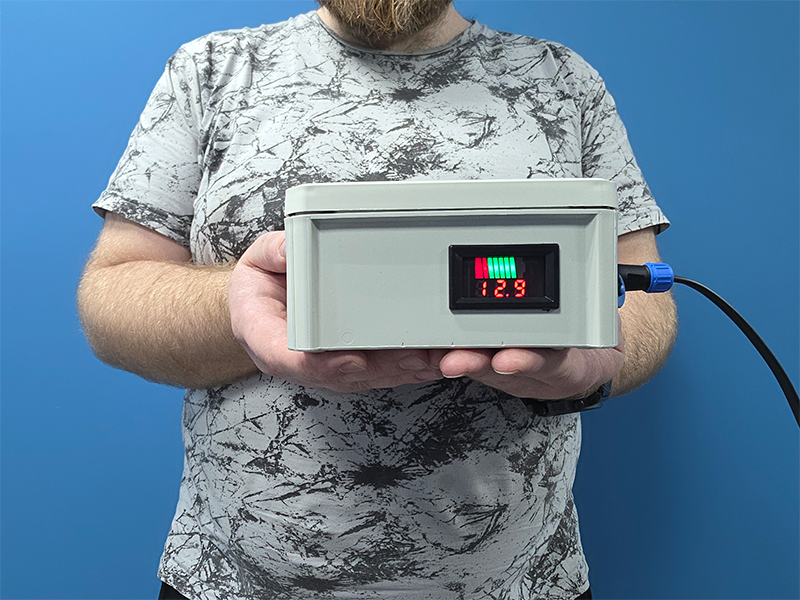 Блок АКБ имеет стабилизатор на 12В, поэтому он подходит для работы с беспроводной системой видеонаблюдения для башенного крана с зумом NSCAR серии “Кран. С его помощью можно заряжать и обеспечивать питание для беспроводных видеокамер NSCAR, мониторов, видеорегистраторов.