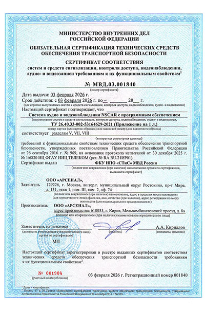 На комплекты, соответствующие ПП РФ № 969 и ПП РФ № 1640 предоставляется сертификат, выданный ФКУ НПО “СТиС” МВД России