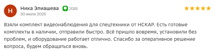 Взяли комплект видеонаблюдения для спецтехники от НСКАР. Есть готовые комплекты в наличии, отправили быстро. Всё пришло вовремя, установили без проблем, и оборудование работает отлично. Спасибо за оперативное решение вопроса, будем обращаться вновь. скрыть