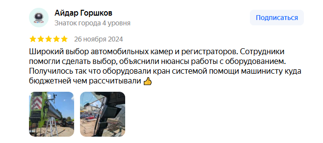 Широкий выбор автомобильных камер и регистраторов. Сотрудники помогли сделать выбор, объяснили нюансы работы с оборудованием. Получилось так что оборудовали кран системой помощи машинисту куда бюджетней чем рассчитывали 👍 скрыть