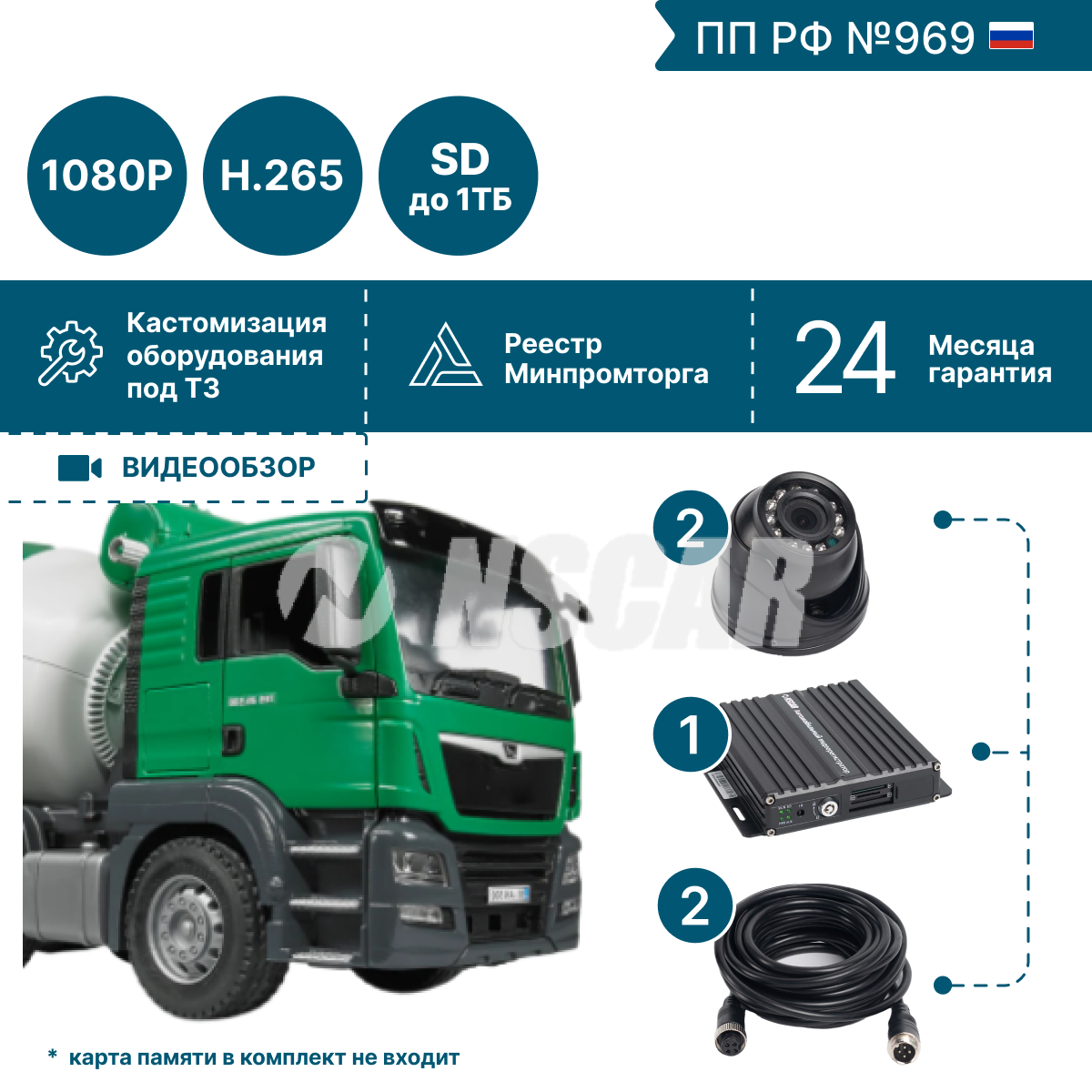 Комплект видеонаблюдения NSCAR на 2 видеокамеры BN201 FullHD_SD (969) подходит для установки на бензовозы, химические автоцистерны, танк-контейнеры, железнодорожные цистерны, битумовозы, бортовые автомобили, тентованные автомобили, изотермические автомобили (фургоны, рефрижераторы, прицепы)
