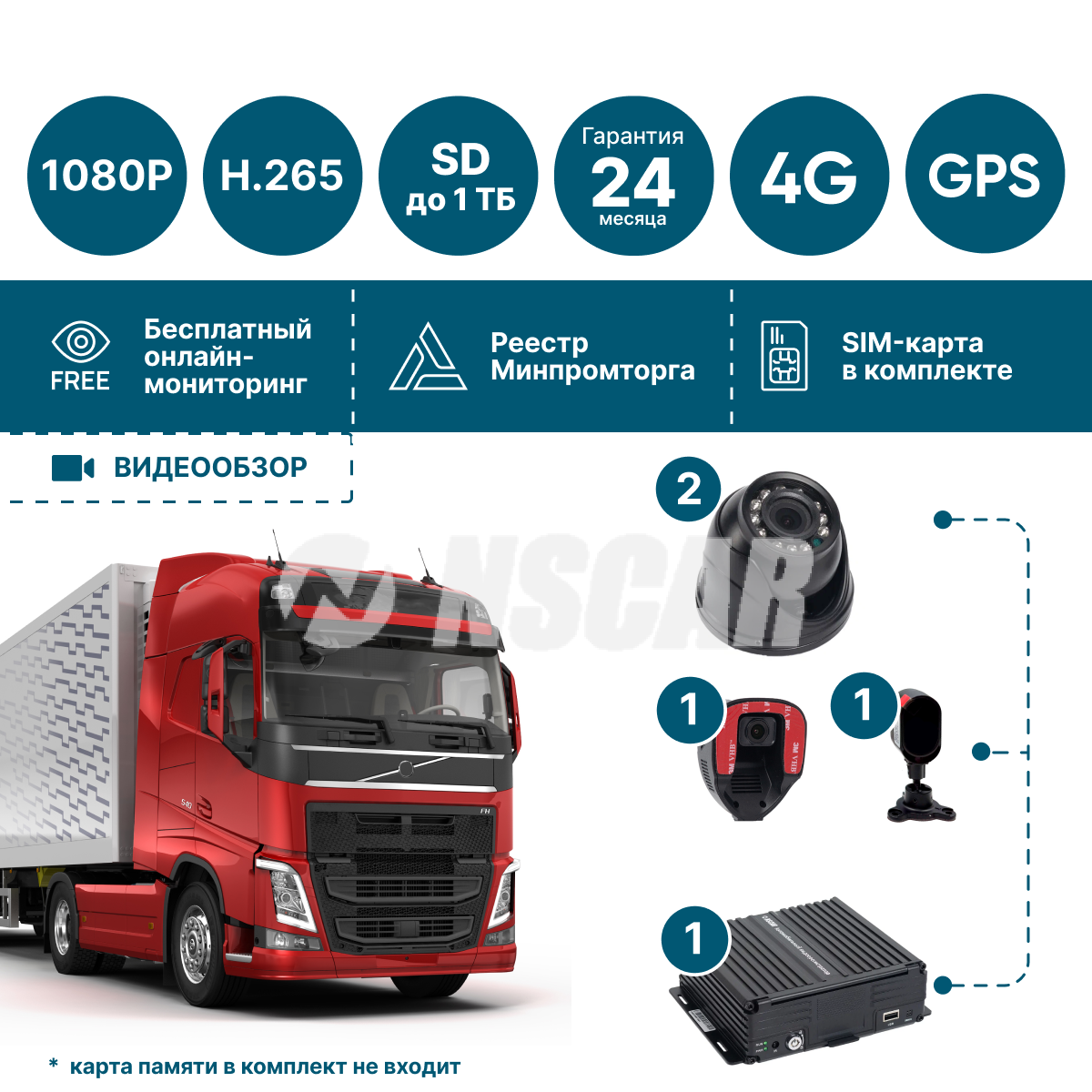 Комплект видеонаблюдения для грузового транспорта с системой помощи и контроля водителя ADAS-DSM. Подходит для установки на грузовики, газели, фургоны, тягачи, фуры, цистерны, автовозы, лесовозы.