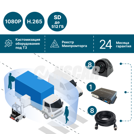 Стандартные комплекты NSCAR 360° рассчитаны на установку на транспорт длиной до 12 метров — этого достаточно для большинства автобусов, грузовиков и спецтехники.