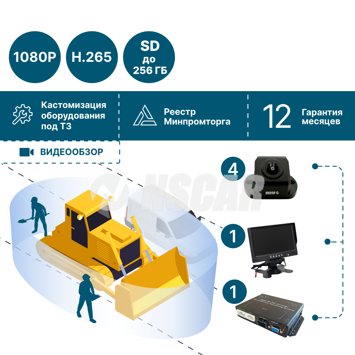 Стандартные комплекты NSCAR 360° рассчитаны на установку на транспорт длиной до 12 метров — этого достаточно для большинства автобусов, грузовиков и спецтехники.