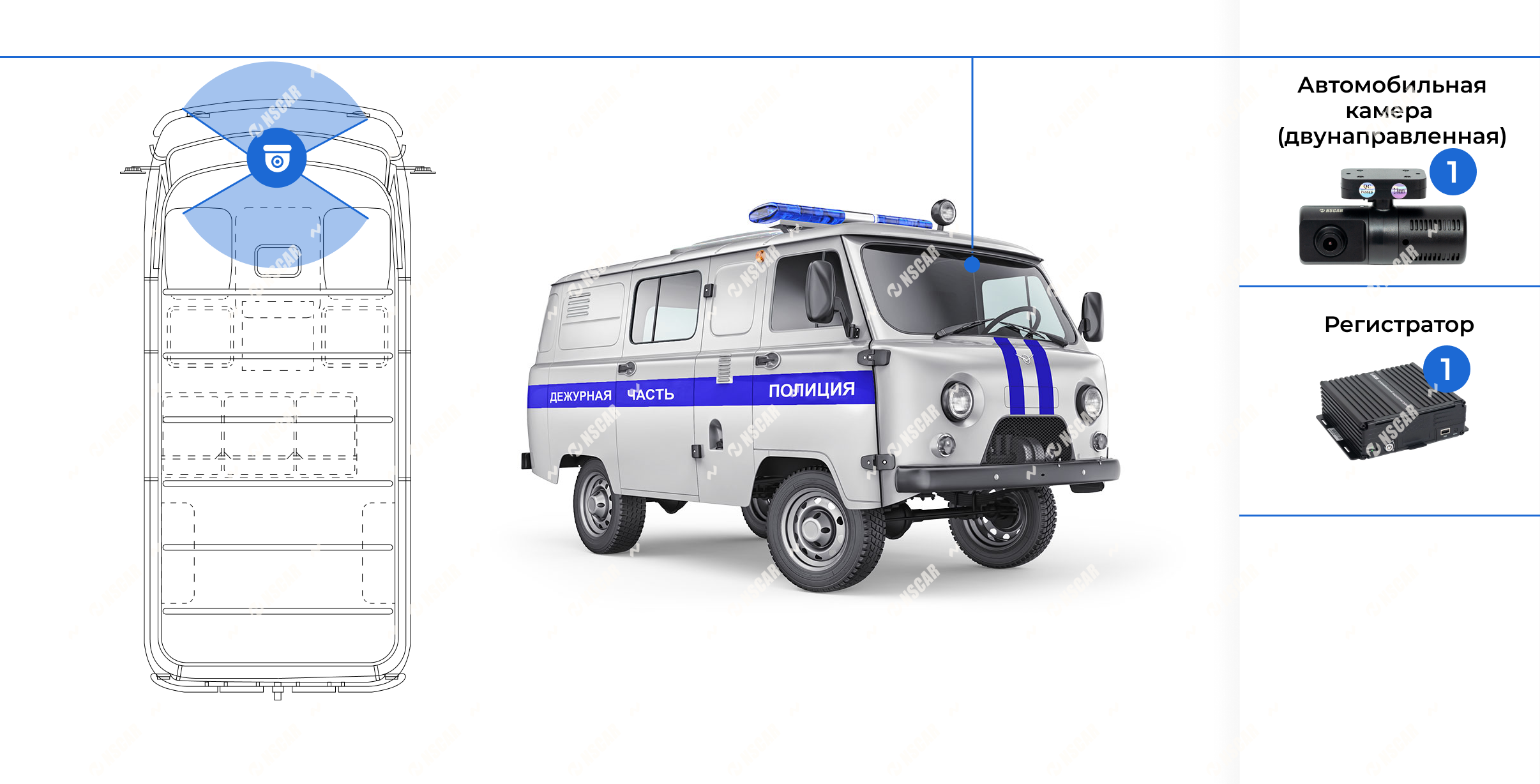 Комплект видеонаблюдения для автомобиля полиции и ДПС NSCAR подходит для установки на спецтехнику МЧС, будки для перевозки осужденных, пожарные машины, патрульные автомобили ДПС, служебные автомобили полиции.