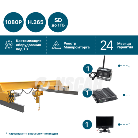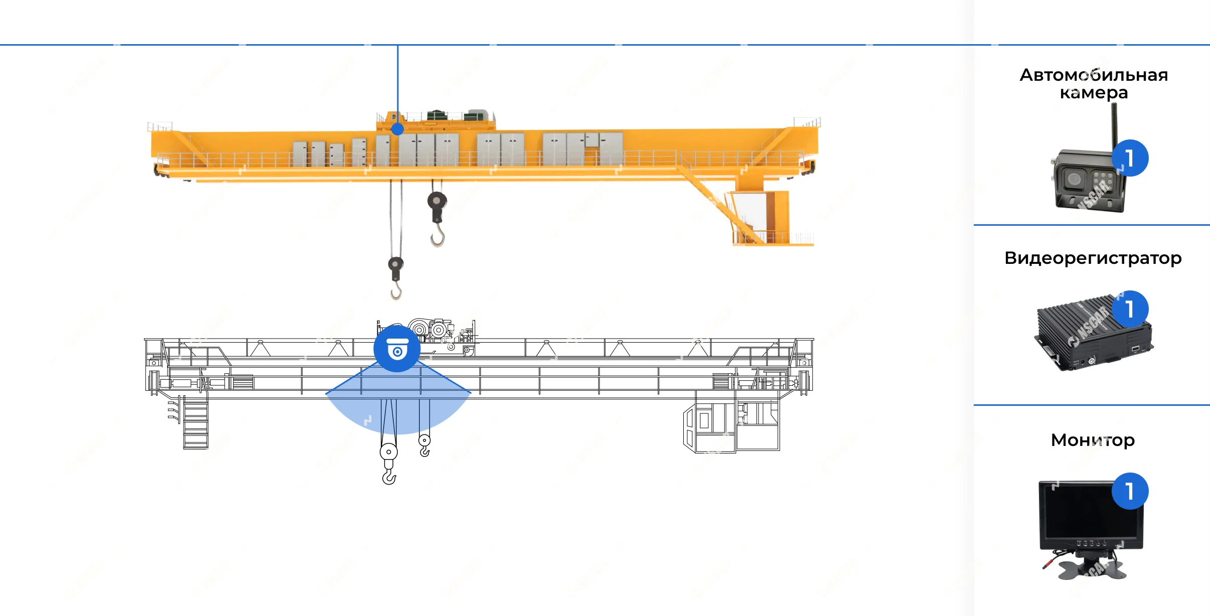 Решение подходит для эксплуатации в производственных цехах, на складах, логистических терминалах и промышленных площадках, где требуется надёжная система видеонаблюдения для мостового крана и подвижных объектов.