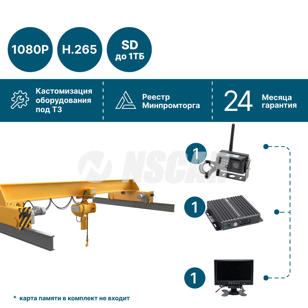 Комплект видеонаблюдения NSCAR для мостового крана предназначен для визуального контроля работы подъёмного оборудования, зоны перемещения груза и повышения уровня промышленной безопасности при выполнении грузоподъёмных операций. Система эффективно применяется на мостовых и козловых кранах, включая кран мостовой однобалочный, кран мостовой двухбалочный, мостовой грейферный кран, а также кран мостового типа и другие виды подъёмных механизмов.