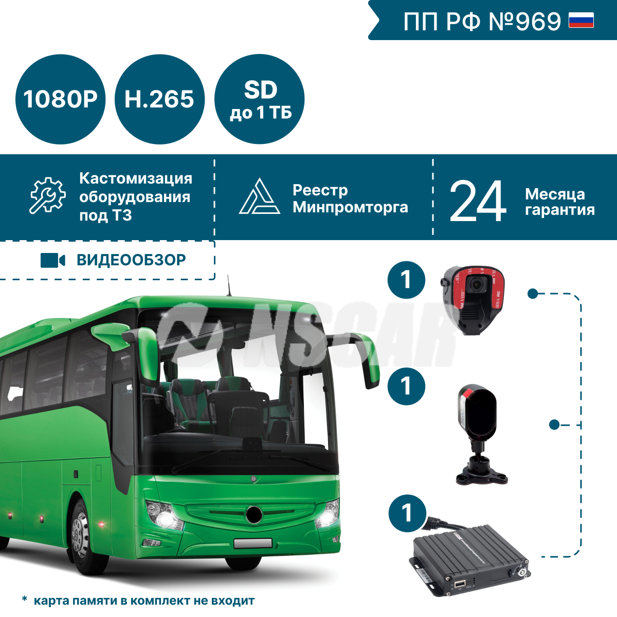 Комплект видеонаблюдения для общественного транспорта с системой помощи и контроля водителя ADAS-DSM. Подходит для установки на автобусы, маршрутные такси, троллейбусы, трамваи.