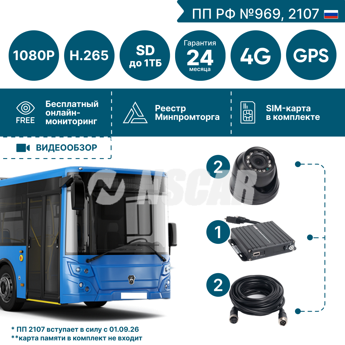 Комплект на 2 камеры NSCAR BUS201 FullHD_2SD (по 969) подходит для установки на автобусы, маршрутные такси, троллейбусы, трамваи, пассажирские поезда, метро, электрички, паромы, теплоходы, речные трамвайчики, самолеты.