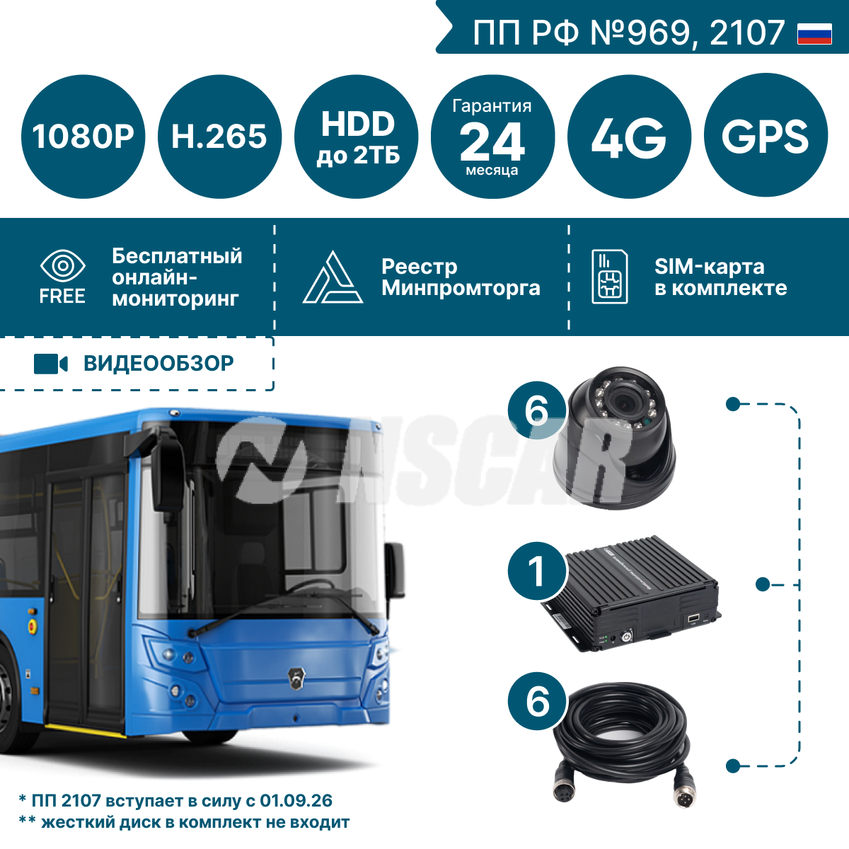 Комплект на 6 камер NSCAR BUS601 FullHD_HDD (по 969) подходит для установки на автобусы, маршрутные такси, троллейбусы, трамваи, пассажирские поезда, метро, электрички, паромы, теплоходы, речные трамвайчики, самолеты.