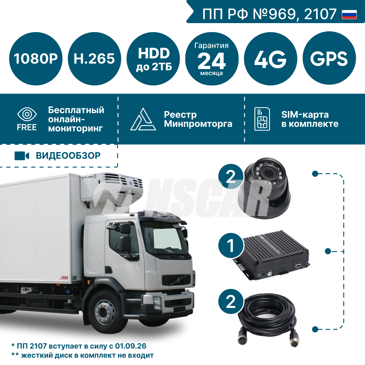 Комплект видеонаблюдения NSCAR на рефрежератор на 2 камеры BN201 FullHD_HDD (по 969) подходит для установки на рефрижераторы, тентованные автомобили, изотермические автомобили (фургоны, прицепы).