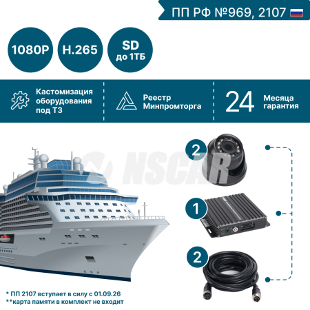 Комплект на 2 камеры NSCAR BUS201 FullHD_2SD (по 969) подходит для установки на автобусы, маршрутные такси, троллейбусы, трамваи, пассажирские поезда, метро, электрички, паромы, теплоходы, речные трамвайчики, самолеты.
