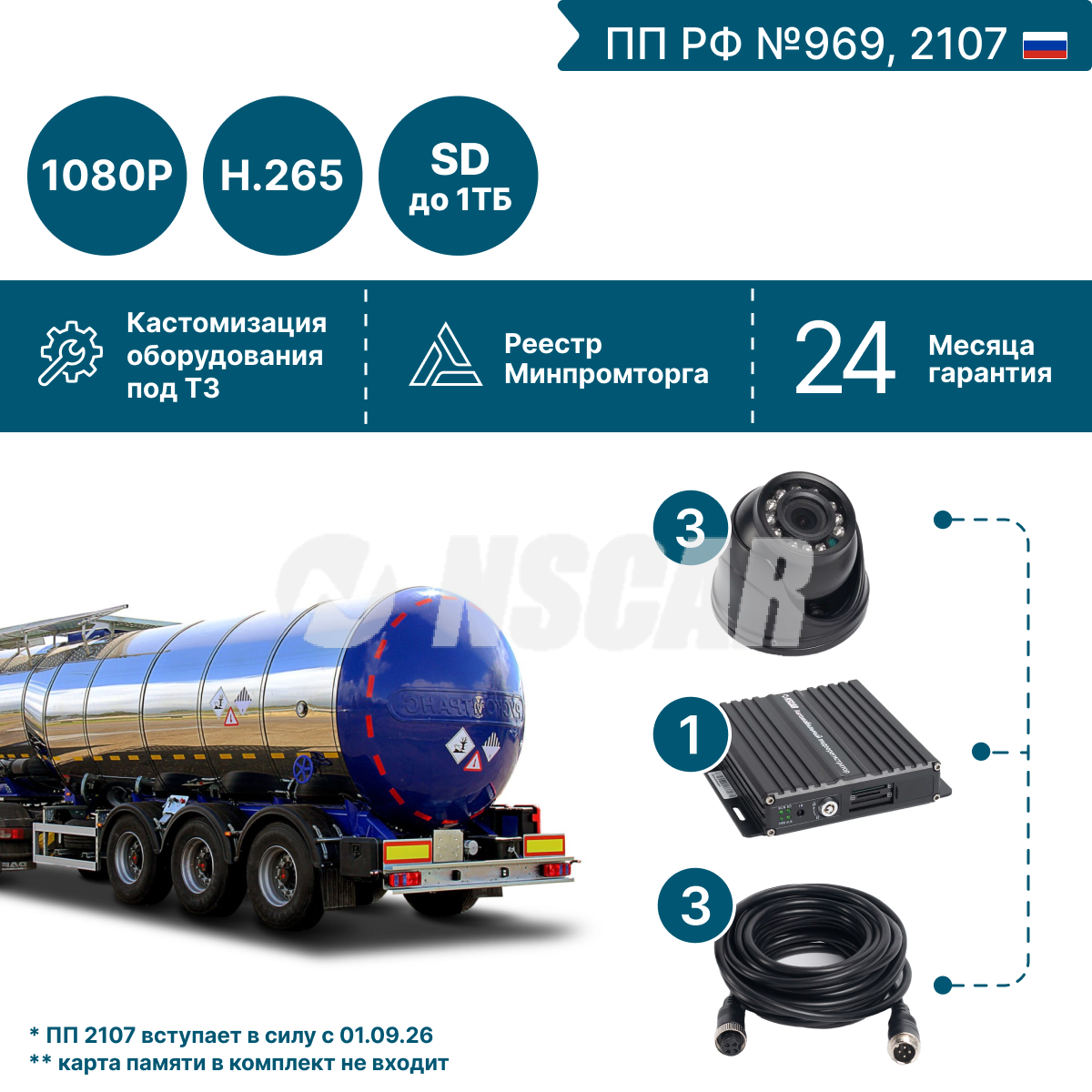 Комплект на 3 камеры NSCAR BN301 FullHD_2SD (по 969) подходит для установки на бензовозы, топливозаправщики, химические автоцистерны, танк-контейнеры, железнодорожные цистерны, битумовозы, бортовые автомобили, тентованные автомобили, изотермические автомобили (фургоны, рефрижераторы, прицепы)