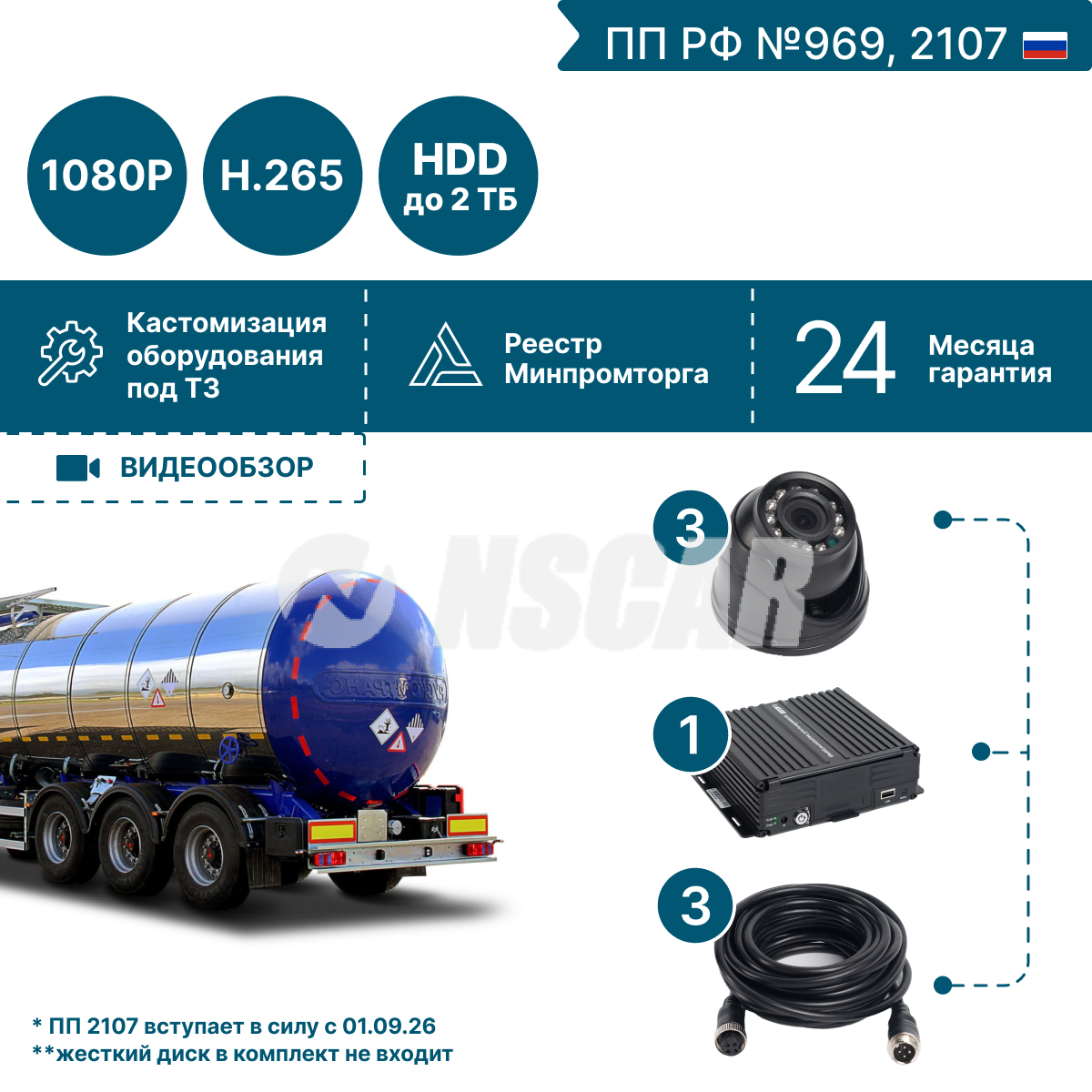 Комплект на 3 камеры NSCAR BN301 FullHD_HDD (по 969) подходит для установки на бензовозы, топливозаправщики, химические автоцистерны, танк-контейнеры, железнодорожные цистерны, битумовозы, бортовые автомобили, тентованные автомобили, изотермические автомобили (фургоны, рефрижераторы, прицепы)