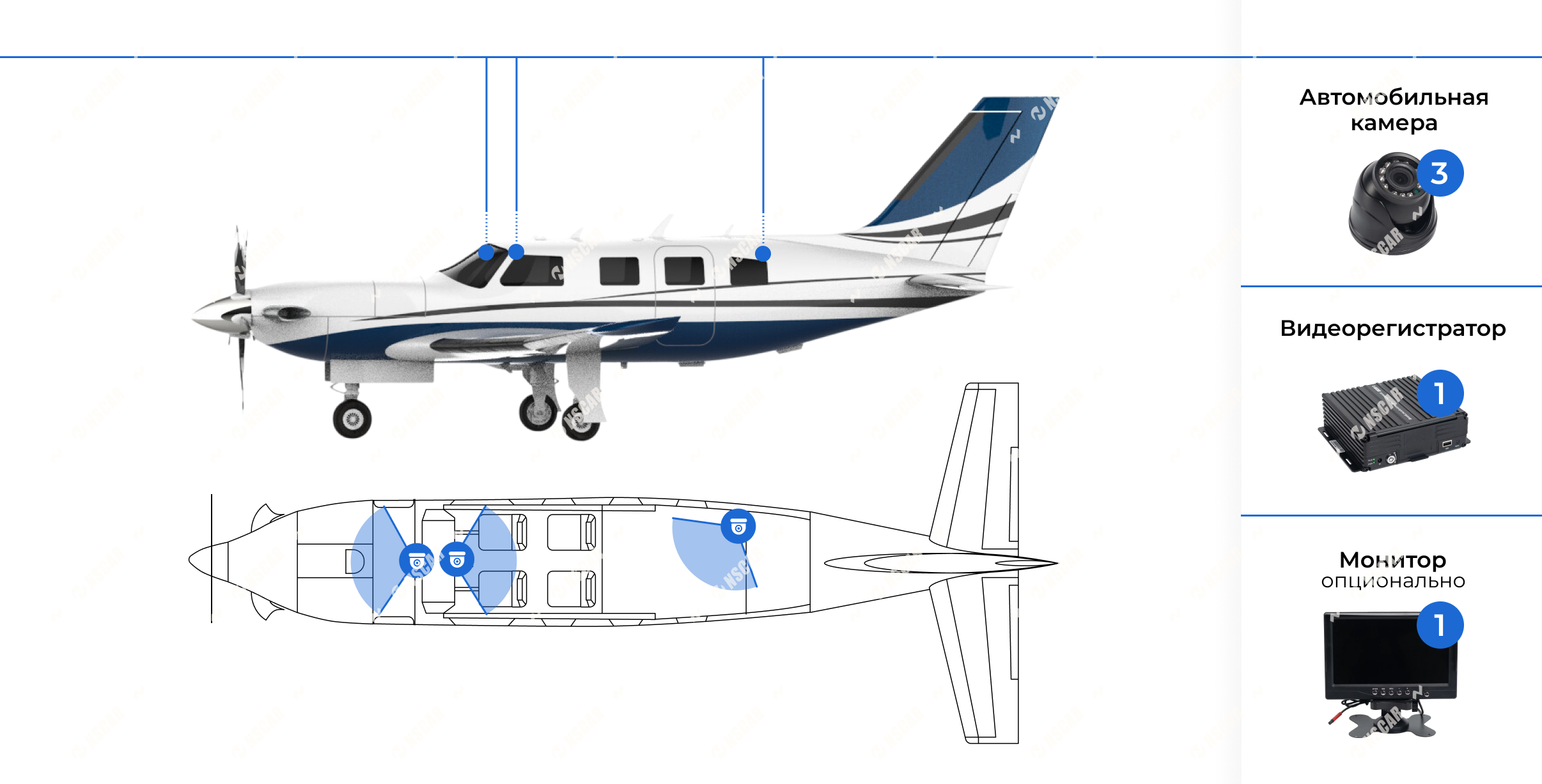 Комплект на 3 камеры NSCAR AIR301 FullHD_2SD (по 969) подходит для установки на с/х самолеты, военные воздушные суда,частный воздушный транспорт.