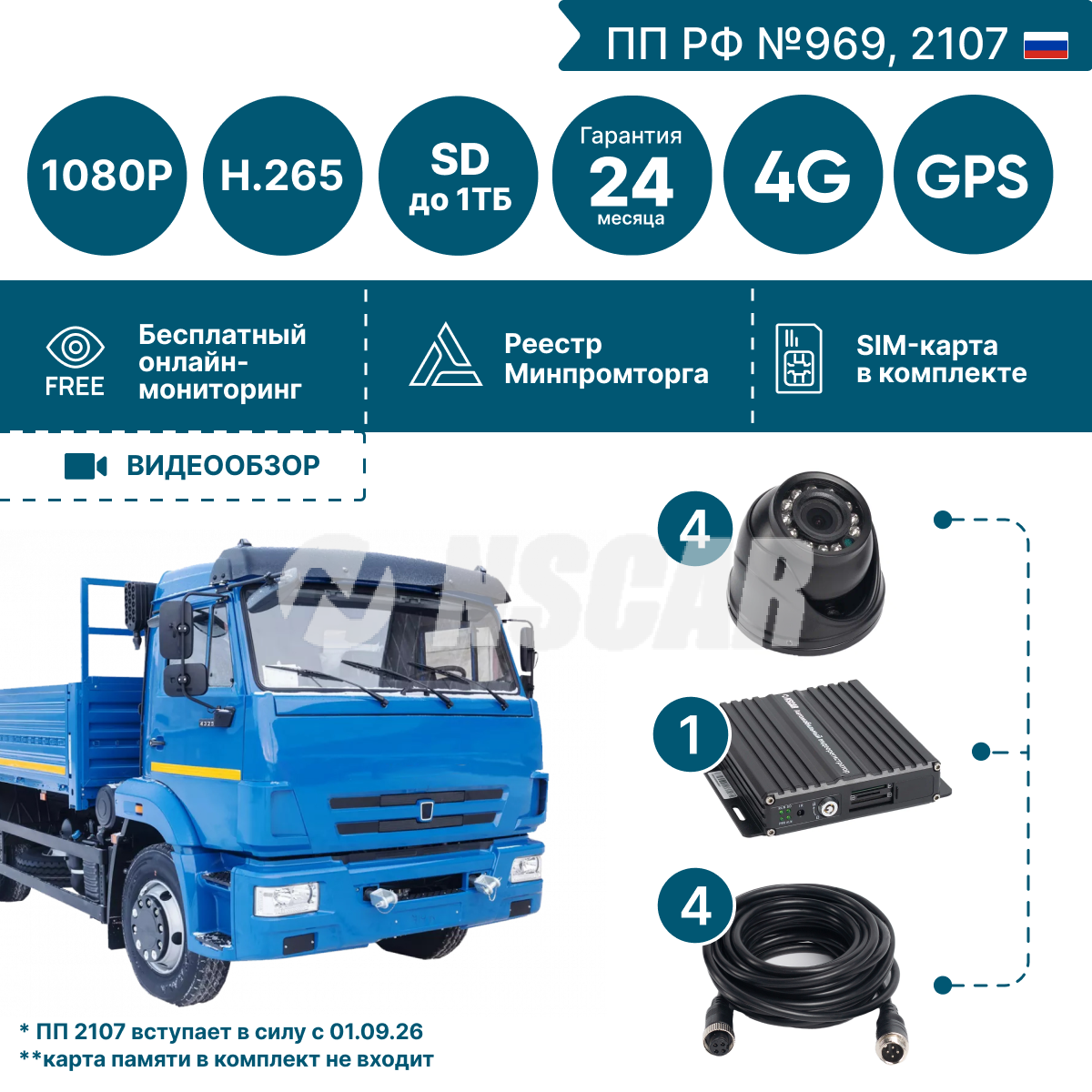 Комплект на 4 камеры NSCAR BN401 FullHD_2SD (по 969) подходит для установки на бензовозы, топливозаправщики, химические автоцистерны, танк-контейнеры, железнодорожные цистерны, битумовозы, бортовые автомобили, тентованные автомобили, изотермические автомобили (фургоны, рефрижераторы, прицепы)