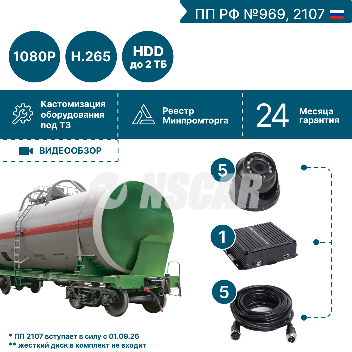 Комплект на 5 камер NSCAR BN501 FullHD_HDD (по 969) подходит для установки на бензовозы, топливозаправщики, химические автоцистерны, танк-контейнеры, железнодорожные цистерны, битумовозы, бортовые автомобили, тентованные автомобили, изотермические автомобили (фургоны, рефрижераторы, прицепы)