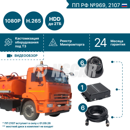 Комплект видеонаблюдения NSCAR на 6 видеокамер для бензовоза BN601 FullHD_HDD (по 969) подходит для установки на бензовозы, топливозаправщики, химические автоцистерны, танк-контейнеры, железнодорожные цистерны, битумовозы, бортовые автомобили, тентованные автомобили, изотермические автомобили (фургоны, рефрижераторы, прицепы)