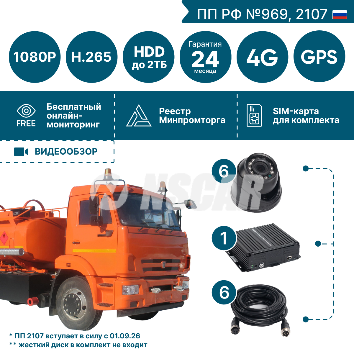 Комплект видеонаблюдения NSCAR на 6 видеокамер для бензовоза BN601 FullHD_HDD с опциями 4G+GPS/Глонасс (по 969) подходит для установки на бензовозы, топливозаправщики, химические автоцистерны, танк-контейнеры, железнодорожные цистерны, битумовозы, бортовые автомобили, тентованные автомобили, изотермические автомобили (фургоны, рефрижераторы, прицепы)