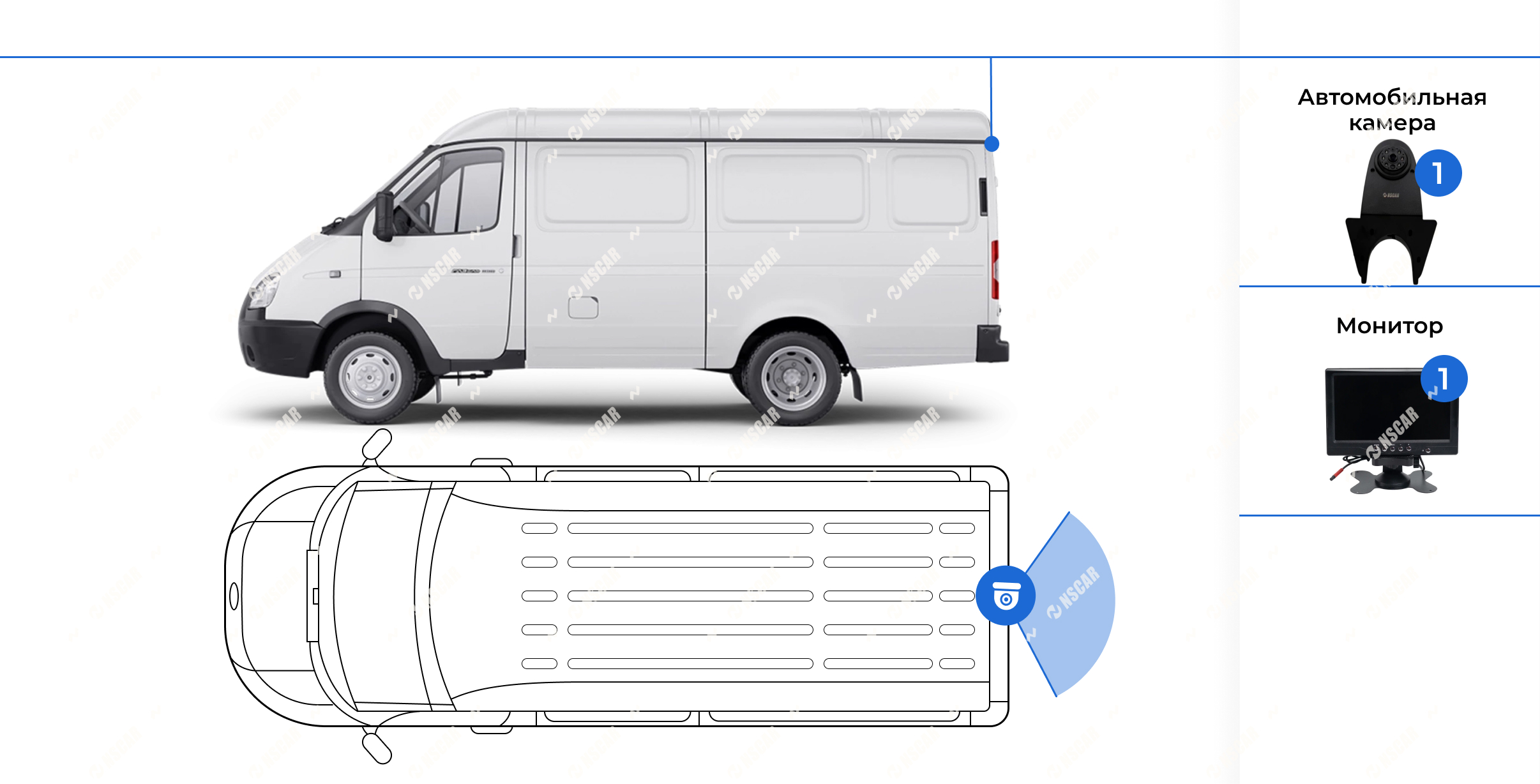 Парковочный комплект (камера заднего вида + монитор 7'') NSCAR PK17_SD с функцией записи подходит для установки в ГАЗЕЛИ.